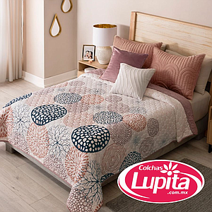 Da un toque de elegancia y vanguardia con el tono negro en combinación con el greige, amarás su contraste y el estampado bohemio en el holán. Colcha con holán estampado y capitonado especial, suave por su textura viasoft. Complementa con fundas y cojines.